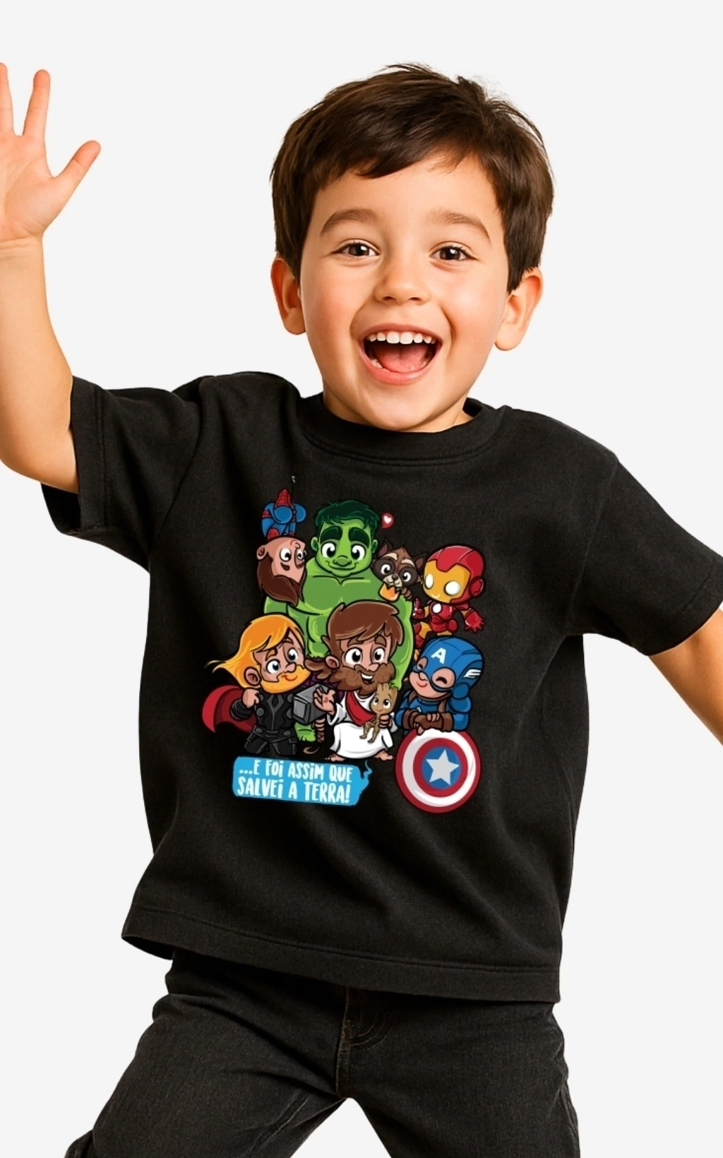 Camiseta Infantil Oversized Heróis O Salvador do Mundo